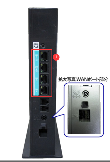 下記機器、数字が同じ個所、LAN線の繋ぐ。